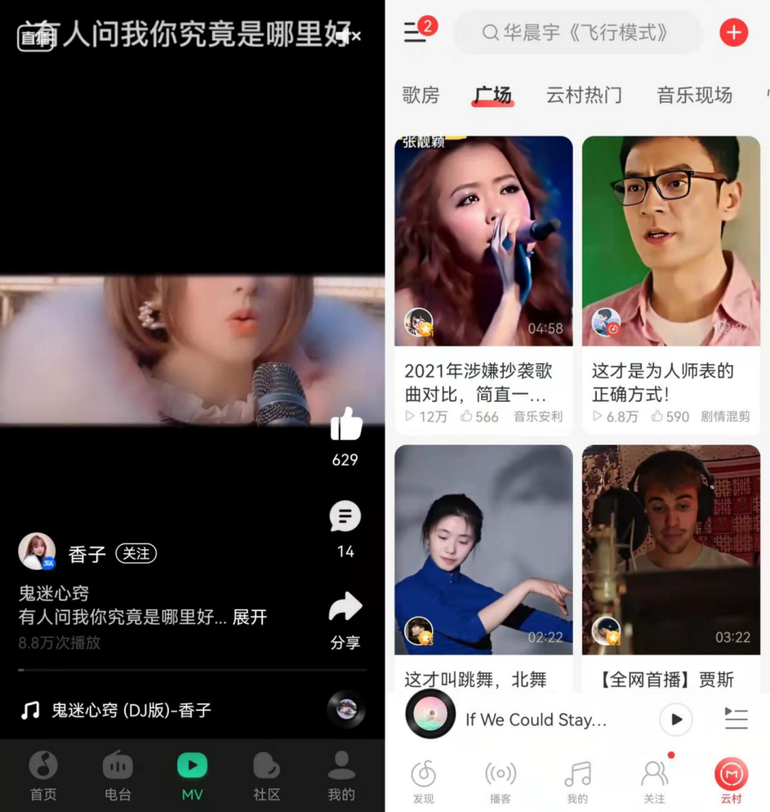 而音樂平台也開始對短視頻磨刀霍霍,接連上線短視頻板塊。網易云是最早嘗試接入短視頻的平台,甚至引入“Mlog”(音樂日記),目前社區版塊已經被短視頻內容填滿,擁有音樂現場、情感故事、二次元等12個分區。而騰訊音樂也不甘落後,QQ音樂MV板塊的單排播放頁面與抖音如出一轍,其內容多是1分鐘左右的用戶自製短視頻,官方MV在其中反倒無處可尋。