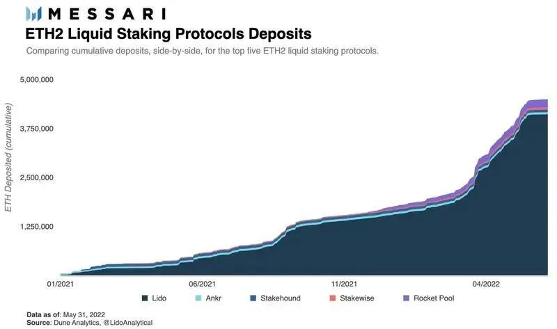 在說以太坊2.0時常常提到的合併(Merge)就是將PoW的主網(以太坊稱為處理交易的執行層)與PoS的信標鏈(以太坊官方稱為共識層)進行合併。以太坊的合併需要首先在測試網上進行測試,一旦在測試過程中發現任何問題,節點視情況進行修復。目前以太坊的測試網Ropsten、Sepolia已經分別於6月9日和7月6日完成了合併。剩下的Goerli測試網也將於近日進行合併。如果一切順利,以太坊正式網絡將於九月中下旬結束合併。在那之後,PoW的機制將被廢棄,整個網絡將通過PoS來產生新的區塊。為了確保共識機制切換成功,以太坊開發者提議實施難度炸彈,以增加PoW的挖礦難度。難度炸彈在2015年被加入到以太坊代碼中,它被描述為:在預定的區塊數上,增加PoW算法中謎題的難度,使計算產生區塊的時間變長,挖礦變得困難,以此來減少礦工的挖礦獎勵,打消他們的積極性。難度炸彈實施後,礦工們將變得無利可圖,原PoW網絡也就無法繼續運行。共識機制的轉變並不能提升以太坊的性能,性能的提升需要通過分片來實現。分片是一種數據庫分區概念,用於優化存儲并快速處理,通過把組織的網絡分為較小的分區,水平分割數據庫,分散負載,每個分片都有自己獨立的數據,多個分片可以並行處理,從而減少網絡擁堵,增加TPS,實現網絡的可擴展性。以太坊比較早期的分片計劃是將主網劃分成64個分片,每個分片都有獨立的區塊提議者和委員會,區塊提議者和委員會是隨機選擇和隨機分配的,區塊提議者從交易池中選擇要納入區塊的交易,當獲得委員會三分之二的同意票之後,區塊就可以被納入鏈上。這個早期的分片方案旨在擴展以太坊主鏈的性能。但是執行起來很複雜,加之經過幾年的時間,layer2發展迅速,Rollup百花齊放,所以,以Vitalik為中心的以太坊的開發者們逐漸拋棄了這個原有的方案,轉向了新的技術選型,即不再在以太坊主網上直接分片以追求承載更多交易,而是轉換為以Rollup為中心,由Rollup在交易層面擴容、主鏈只為Rollup提供數據可用性的底層鏈的路線圖。 在新方案中,以太坊的目標是作為可擴展的數據可用性層,可以簡單理解為最終的結算和記賬。主鏈擴容將聚焦於擴大區塊的數據容量,而非提高鏈上計算效率,即:以太坊分片旨在提供更多數據blob(二進制大對象)空間以支持Rollup,以太坊無需對這些數據進行解釋,只收集Rollup的計算和證明結果,確保數據可用,而更多的計算執行和交易有效性則由Layer2的Rollup來實現。更具體來說,由Rollup來進行交易的計算和驗證,並將驗證完成的多筆交易和證明結果納入一個包裹,而主鏈上的區塊只記錄這些包裹。 由於一個區塊可以納入多個Rollup產生的包裹,未來以太坊上會存在多種Rollup來為整個網絡執行擴容,目前主流的主要是zkRollup和Optimistic Rollup,分別對應有效性證明和欺詐證明兩種證明方式。在切換到PoS機制後,整個網絡不再依靠消耗大量電能的礦工節點,因此也變得更加環境友好。 PoS機制下的節點的能源效率比PoW高99%以上,所以PoS網絡的能源效率將大大提升。當採用PoW機制時,礦工節點需要強大而能耗高的硬件設備來進行複雜的數學計算,誰先完成計算,誰就獲得了構建區塊、獲得區塊獎勵的資格。在這種情況下,礦工只能24小時滿負荷運行自己的挖礦設備,以獲得最大的收益,這些高能耗的設備對電力的需求無疑是巨大的。在PoS網絡中,區塊的提議者是隨機選擇的,不再需要大量的礦機硬件來競爭出塊權,也就不再需要巨大的電力消耗。以太坊在由PoW共識轉向PoS之後,不再產生礦工獎勵,取而代之的質押獎勵。所以ETH的發行率將會減少90%。大家把這種情況稱為“Triple Halvening”,因為相當於同時發生了3次比特幣減半,以太坊將經歷發行量的瞬間減少,同時由於質押中的ETH不能流入市場,ETH將進入通貨緊縮的階段。在合併完成之後,會有更多用戶選擇將自己的ETH質押,因為可以獲得一筆幾乎無風險的質押收益。根據測算,質押ETH的年收益率大概為4%。 Kraken在《2022年第一季度質押狀況》的報告中預計,在以太坊完成合併後,質押用戶的年收益率可以達到8.5%-11.5%。另外由於質押需要增加,質押服務賽道預計會有一波爆發。目前有1300多萬ETH質押在信標鏈上,超過以太坊總量的10%,一共41萬驗證者參與了質押。