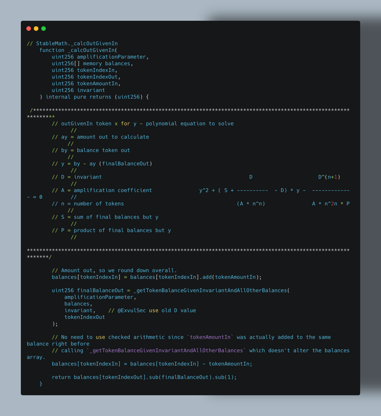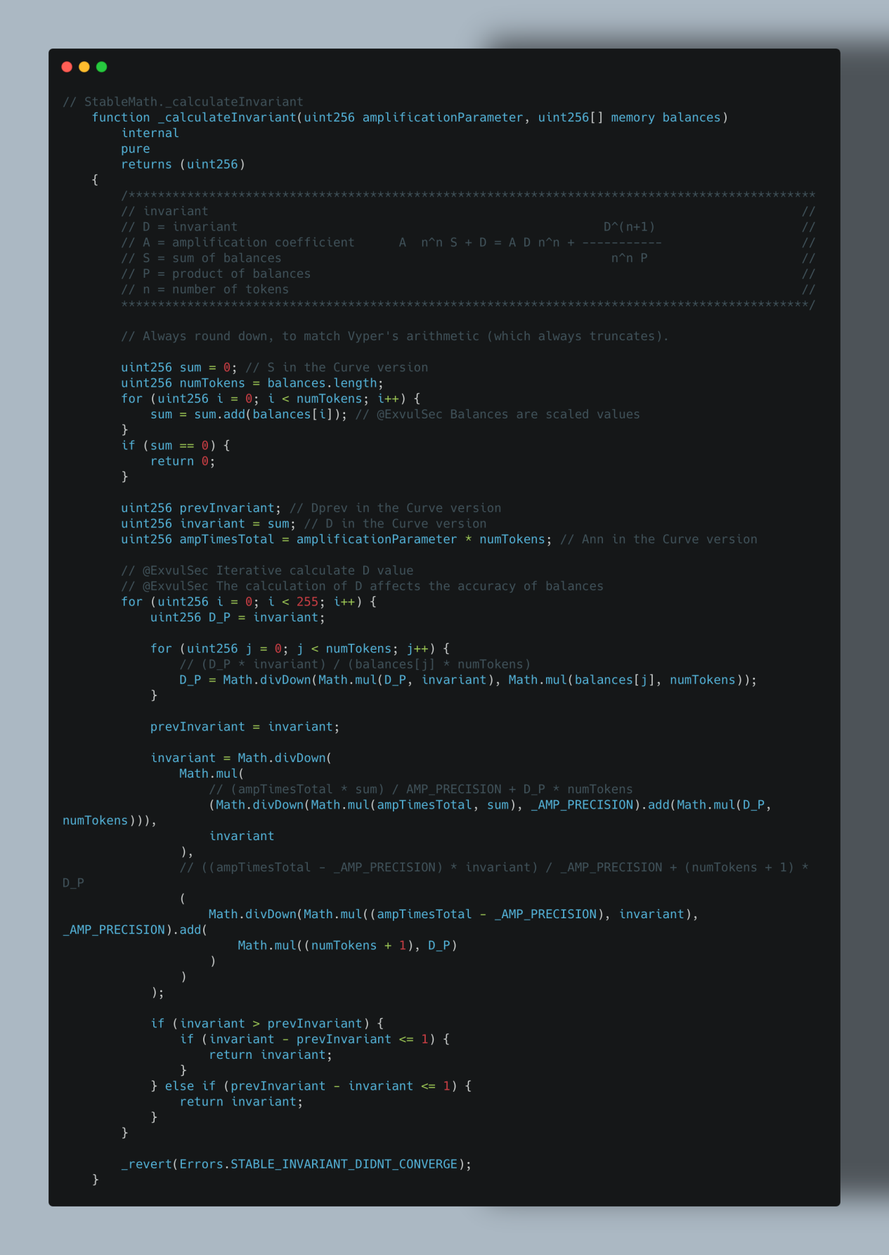 2. 不变值计算对精度敏感:不变值 D 的计算依赖缩放后的 balances 数组,精度损失会直接传递到 D 的计算中,使 D 变小。