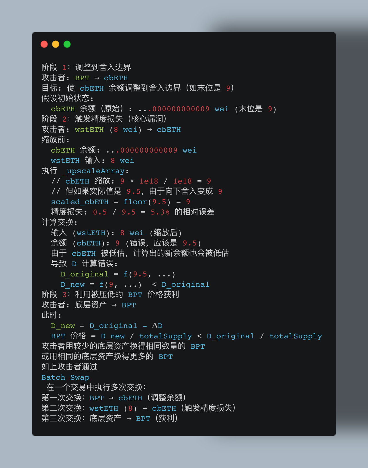 4. Batch Swap 中的精度损失累积:在同一个 batch swap 中,多次交换的精度损失会累积,最终放大为巨大的财务损失。