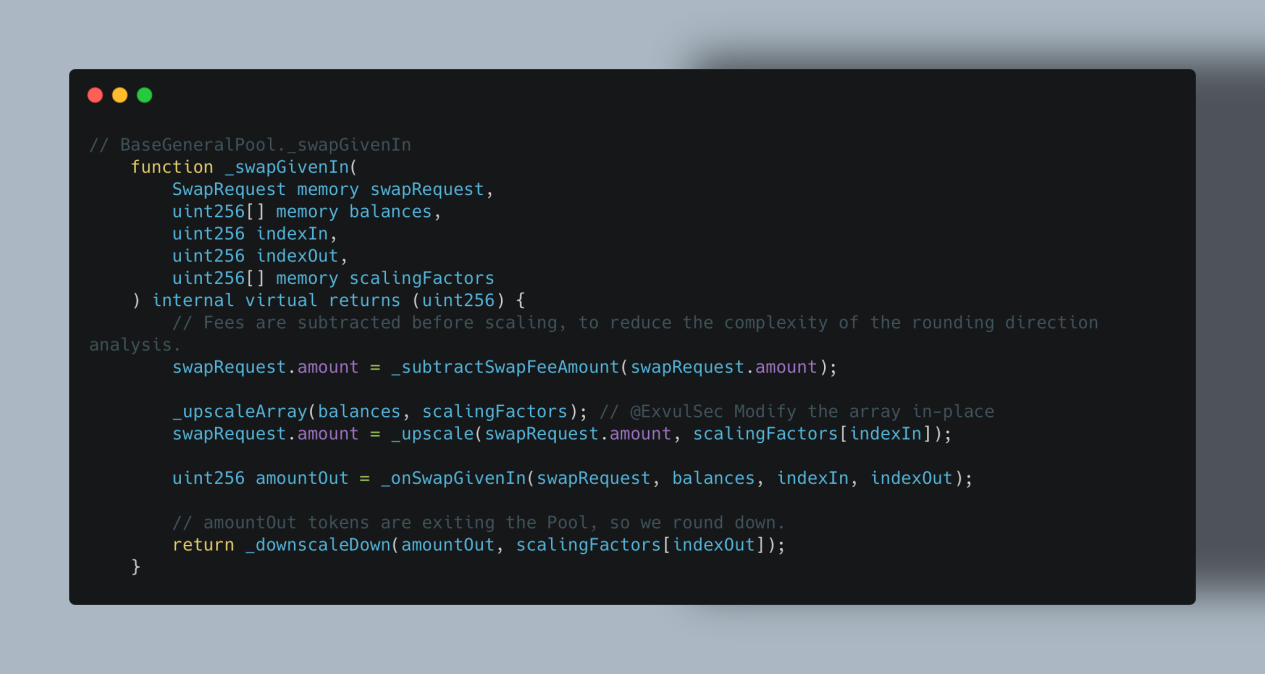 3. 缩放操作集中在 _swapGivenIn或 _swapGivenOut中。
