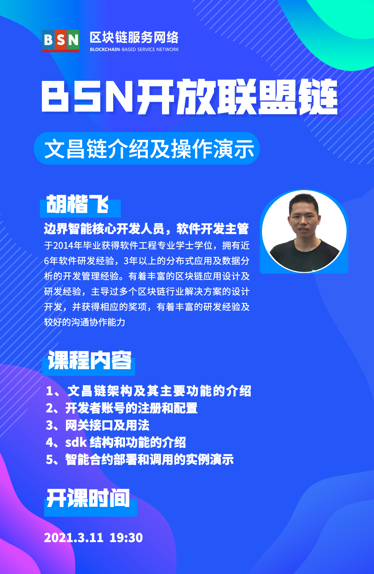 由於各培訓活動開展週期、培訓講師和邀請嘉賓的不同,具體開課通知請隨時關注BSN官網、微信公眾號、BSN知識庫和BSN開發者交流微信群等官方信息渠道。