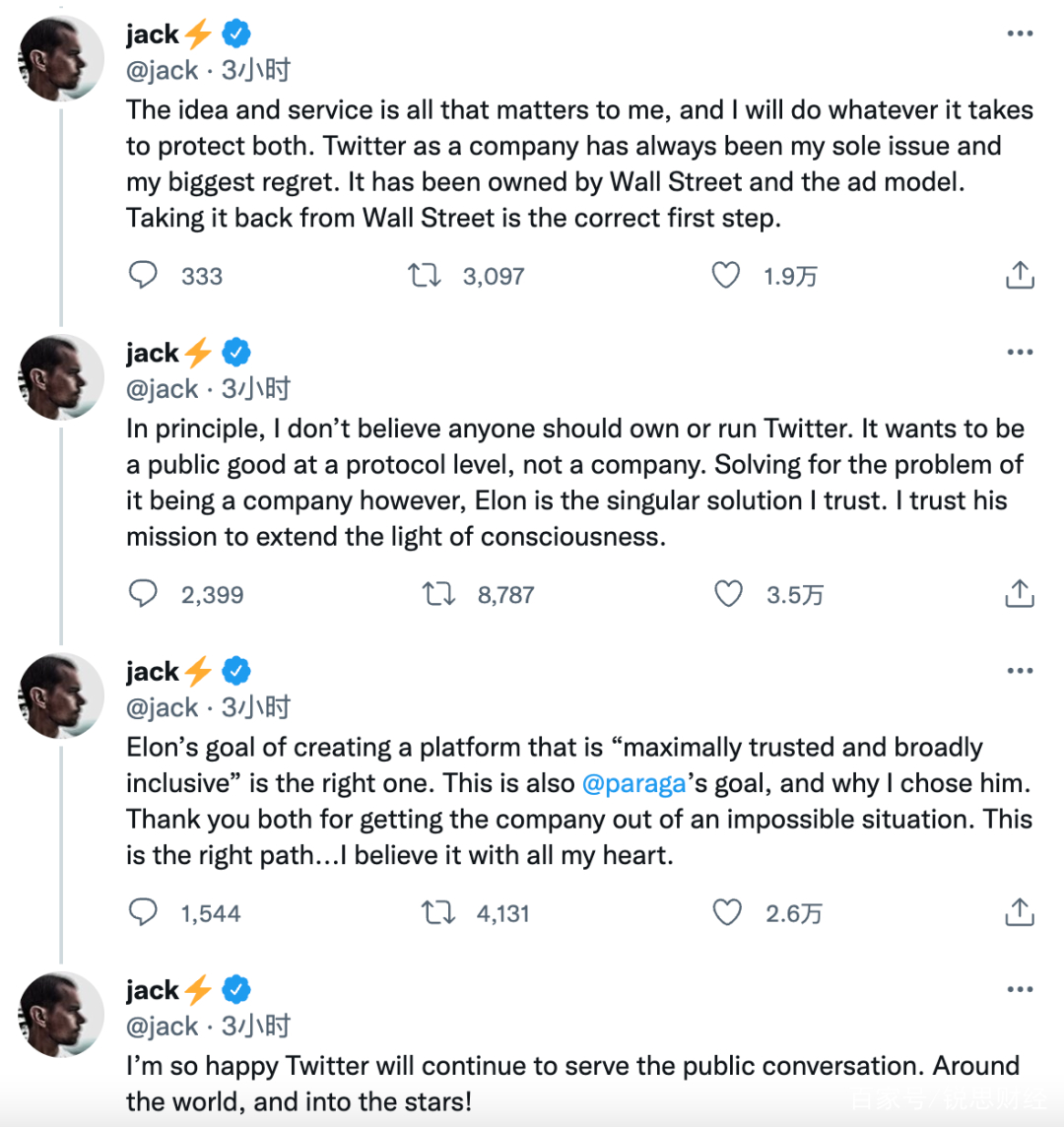 他補充道,“原則上,我認為任何人都不應該擁有或運營推特。它應該成為協議級別的公共產品,而不是一家公司。但他認為馬斯克是解決推特問題“獨一無二的解決方案”,並稱馬斯克的使命是“拓展意識之光”。