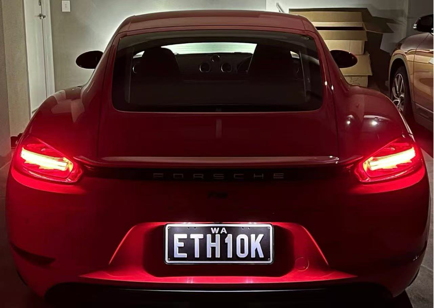 也是那时,他在珀斯注册了“ETH10K”车牌——那会儿 ETH 还在3000U上下,他直觉离10K“不远了”,就把这块牌当成一次押注,也是信仰。