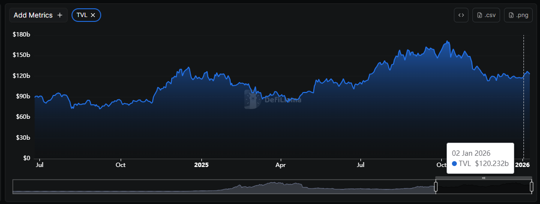 • 核心指标:链上总 TVL 达 1233 亿美元,环比上涨 4.94%,延续震荡走高趋势;