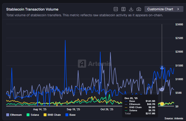 • 稳定币总市值:环比下降 0.35%,但交易所稳定币余额明显走高,短期资金入场迹象显现;
