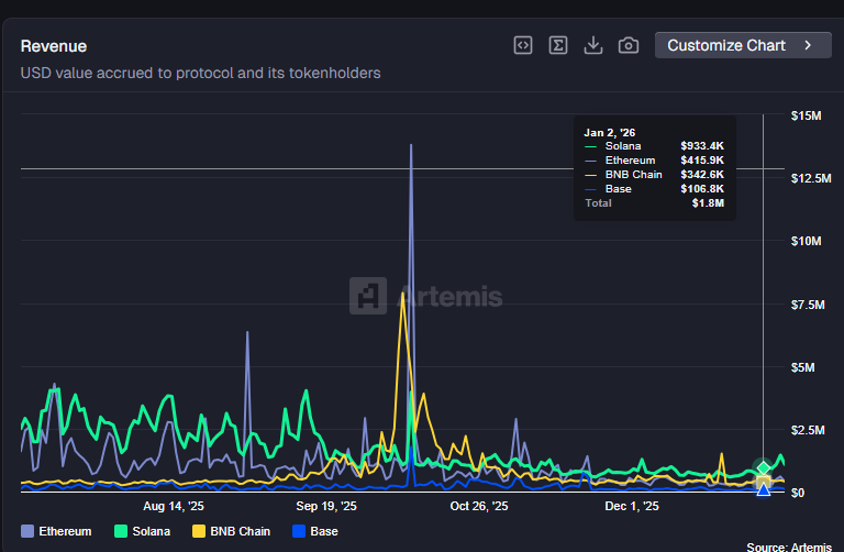 • 用户活跃度:链上活跃情况边际改善,但整体表现一般;DEX 协议收入、活跃用户、交易量环比小幅上升,SOL 链表现尤为突出,WhiteWhale 等代币引发 FOMO 情绪,成为生态热度核心。